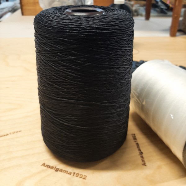 - Артикул 400-Ккр (чёрные): особопрочные капроновые крашеные нитки с противоожигаемой пропиткой. Условная толщина 1 мм, намотка 1990 метров в 1 кг, средний вес бобины 800 грамм